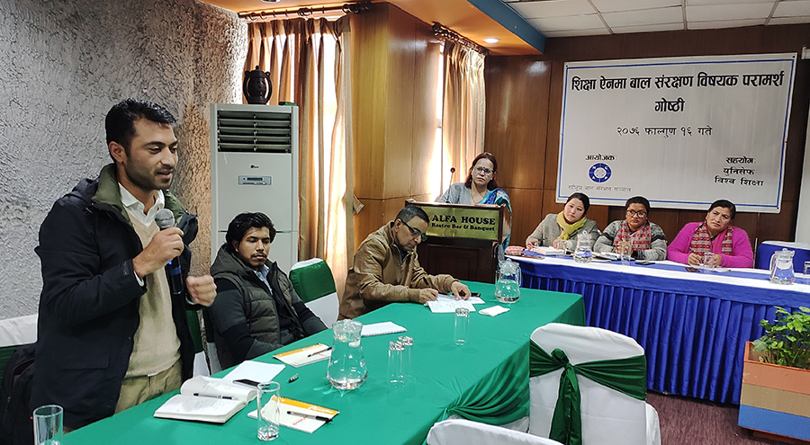 National Child Protection Alliance, a network with 45 members, successfully completed ‘Consultation Seminar on Child Protection in Education Act’ on 28 February 2020 in Kathmandu in collaboration with UNICEF and World Education. There were 50 participants. This event was organized to develop common understanding among Parliament members, Director General from Ministry of Education, Local government officials, Students Union, Child Right Activist and Civil Society organization to incorporate child protection agenda in Education Act.