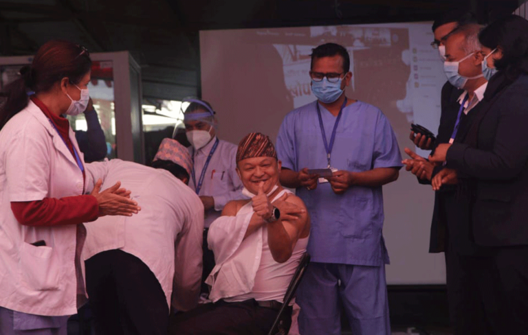 The first vaccination in Nepal has been started at Shukraraj Tropical and Infectious Diseases Hospital, Teku. The director of the hospital, Dr. Sagar Rajbhandari, administered the first vaccine.
