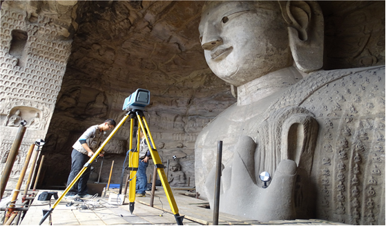 In a cave at the Yungang Grottoes, an ancient Chinese Buddhist site in Datong city, north China’s Shanxi Province, several technicians were taking close-up photogrammetry and collecting image data with instruments such as HD cameras, station scanners and 3D laser scanners.