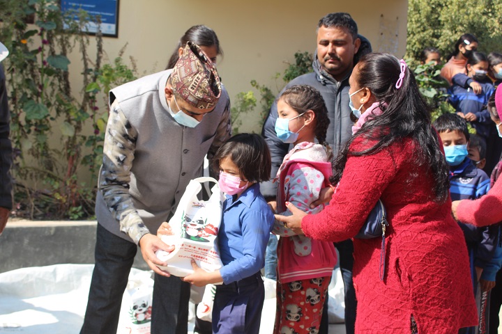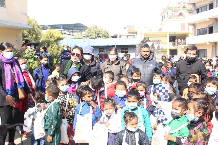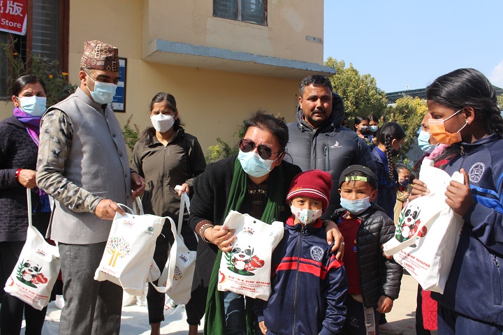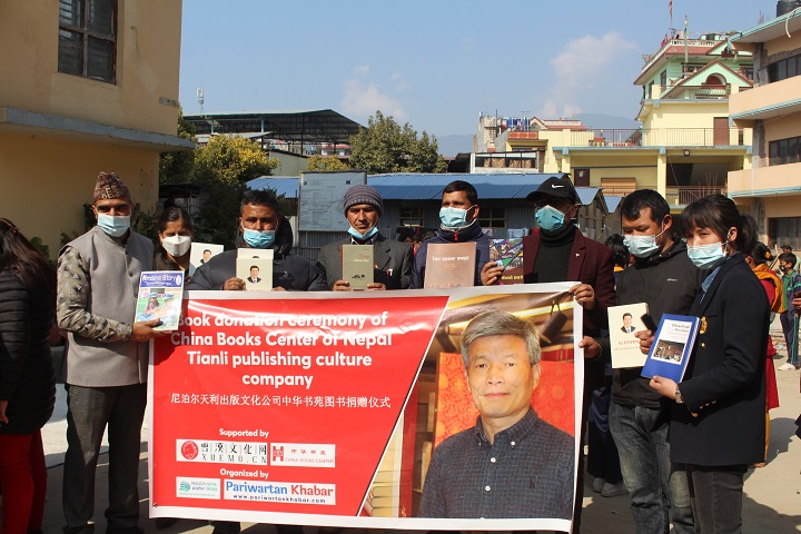 Chairman of BUSS school management committee Mr. Dhruba Prasad Ghimire, School Principal Mr. Binod Pandit, President of RUWON Nepal Ms. Goma Devi Bastola and Vice-President Ms. Uma Ghimire, Liaisons of China Charity Federation Ms. Liu Meiyu and Representative of Tianli China Books Center in Nepal, Representative of Chinese writer Xue Mo in Nepal attended the ceremony.