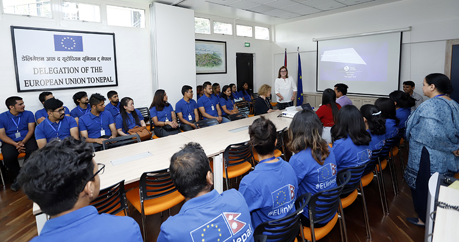 On 14 August 2019, the Delegation of the European Union to Nepal organized a Pre-Departure Orientation (PDO) for the new scholarship recipients of Erasmus Mundus Joint Master Degree (EMJMD) batch 2019-2021. Altogether 52 Nepalese students have been awarded full scholarships for the period 2019-2020 and they will spend 2 years fulltime in prestigious European Universities to pursue their Master Degrees in various fields. During the Pre-Departure Orientation the students were given useful tips and advice for living and studying in Europe.