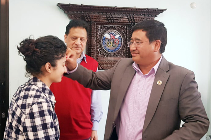 President of Nepal Olympic Committee / Member of Parliament Honorable Jeevan Ram Shrestha bade farewell to the two Olympians for the 9th International Athletes Forum taking place from 13 to 17th April 2019 slated on IOC Headquarters in Lausanne, Switzerland.