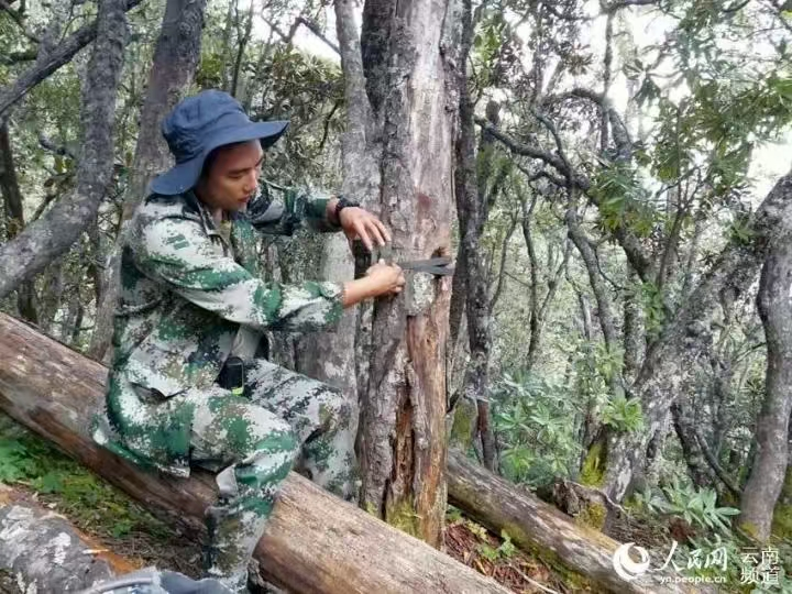 Yu Zhonghua installs an infrared camera for wildlife monitoring in the Baima Snow Mountain Nature Reserve, southwest China’s Yunnan province. (Photo provided by Yu Zhonghua)