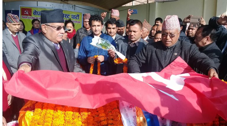 Former Prime Minister and NCP Chairman Pushpa Kamal Dahal ‘Prachanda’ laid party’s flag on the dead body of Pandit in a gesture of highest tribute.