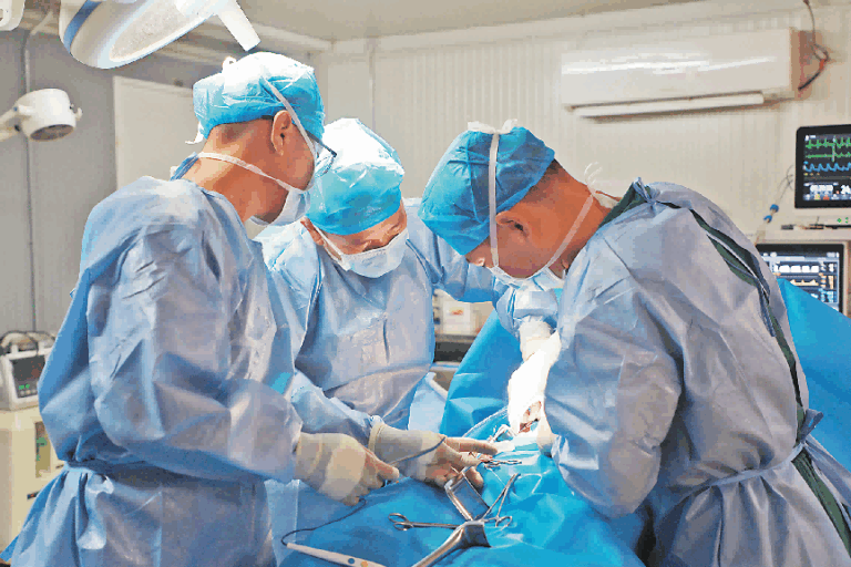 Chinese military doctors perform a surgery during a peacekeeping mission. (Photo/Zhang Boyu)