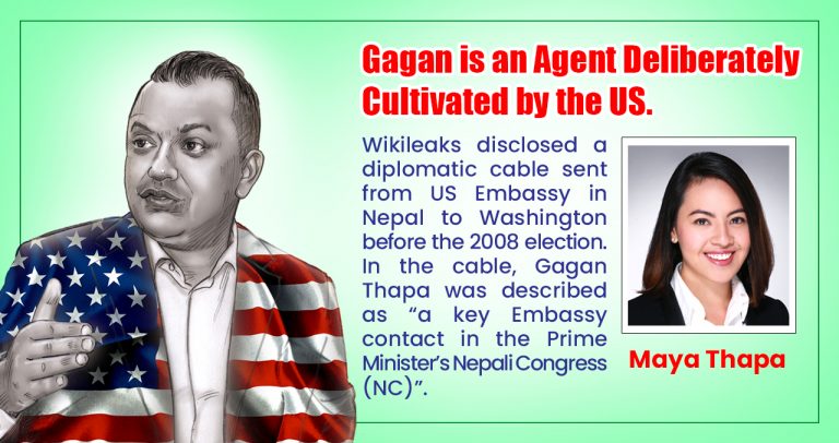 Gagan never disappointed the USA. Though Nepali people had been firmly objecting MCC, Gagan strongly supported the treasonable treaty and even took part in writing the notorious explanatory statement to MCC. As for SPP, though Gagan objected it publicly, he is just waiting a good time. Such an American agent should have no chance to win the election!