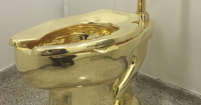 She emailed the White House Office of the Curator in September to say that the Trumps could borrow the toilet installation used by visitors in a museum restroom until mid-September. The 18-karat toilet, titled “America,” is Maurizio Cattelan’s jab at the nation’s greedier instincts. It has an estimated value topping $1 million.