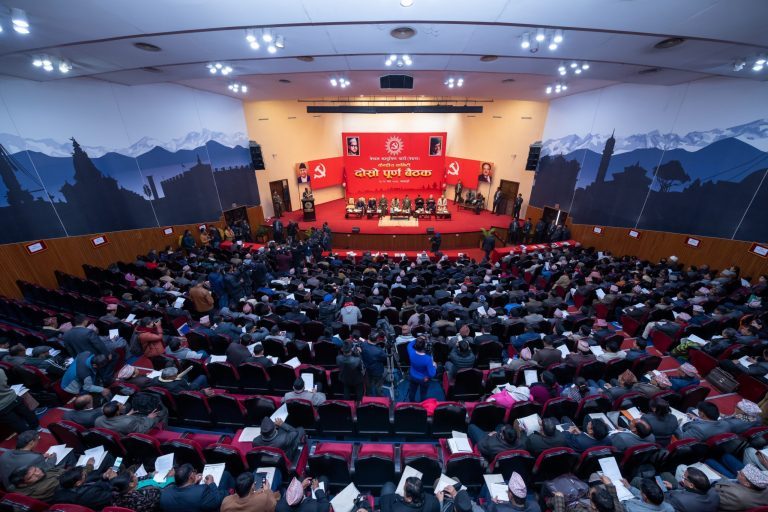 Chairman KP Oli had inaugurated the CC meeting in which another chairman Pushpa Kamal Dahal presented the political report of the party at the Central Committee (CC) meeting that kicked off at City Hall in the capital on Wednesday.