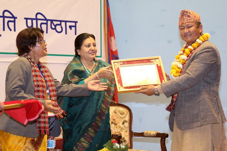 President Bhandari was also honoured. And she honoured 12 persons from different walks of life including CM Rai, CPN (UML) leader Pradip Nepal, education campaigner Umesh Shrestha and litterateur Sachit Rai.