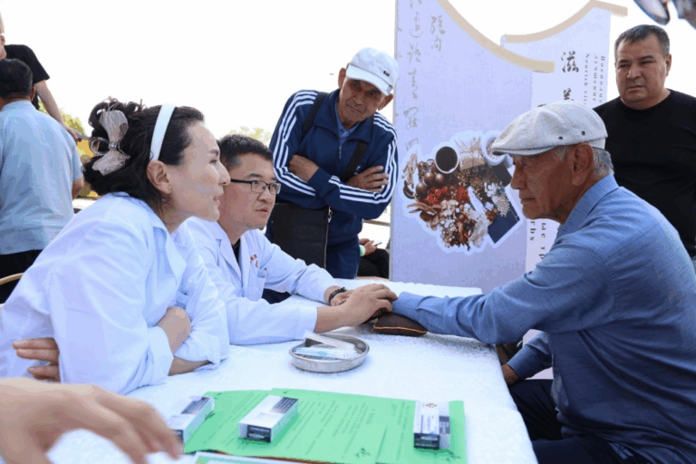 Rahimjan, a Kazakh patient long troubled by migraines, decided to try acupuncture after Liu’s pulse diagnosis. “In Kazakhstan, I often heard people say that traditional Chinese medicine (TCM) works well. Today, I tried it myself and felt very comfortable,” he said, giving a thumbs-up.
