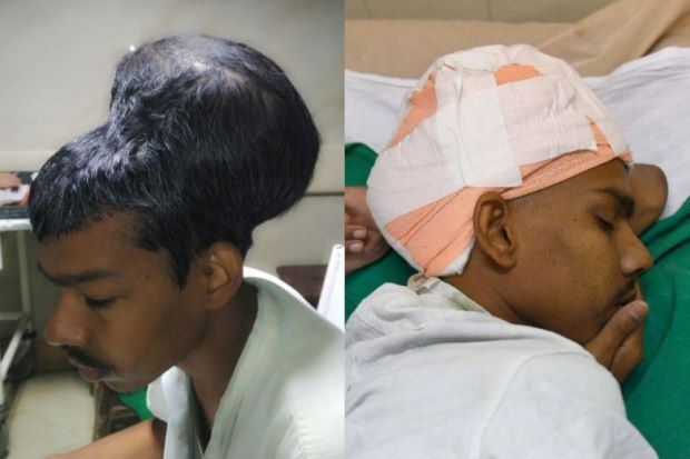 Doctors at Mumbai’s BYL Nair hospital where he was treated said the tumour was so large that “it appeared as if he had two heads mounted on top of each other”.