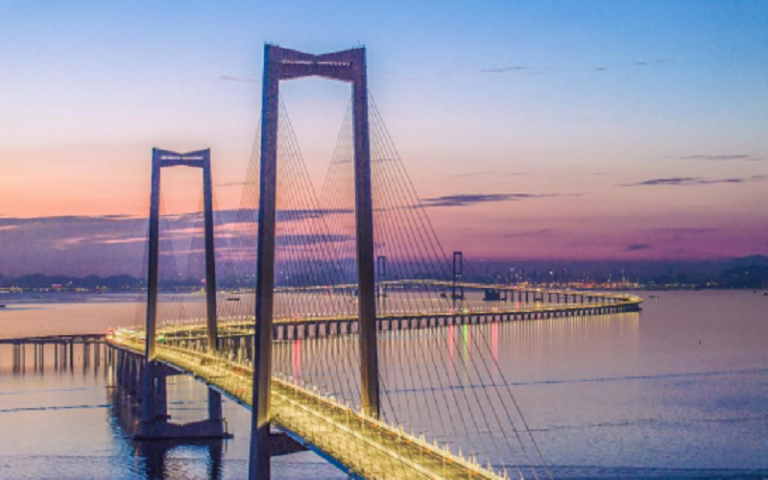 To facilitate smooth ship navigation, the Shenzhen-Zhongshan Bridge, with a main span of 1,666 meters, adopts the offshore steel box girder suspension bridge design, also the world’s largest of its kind. It boasts the highest bridge deck of 91 meters and the highest air traffic clearance altitude of 76.5 meters worldwide.
