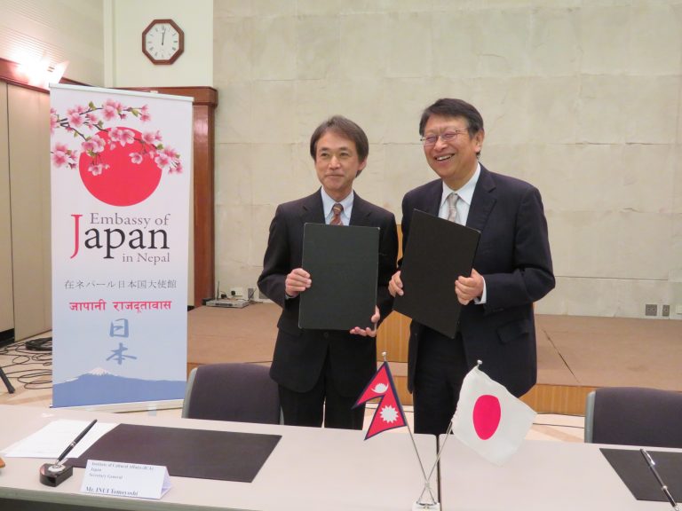 Ambassador of Japan to Nepal, Saigo Masamichi had signed a grant contract for the Construction of Life Infrastructure and Technical Skills Training for Livelihood Improvement of Residents Destroyed by the Earthquake in Sindhupalchowk, Nepal, with Inui Tomoyoshi, Secretary-General, the Institute of Cultural Affairs (ICA) Japan.