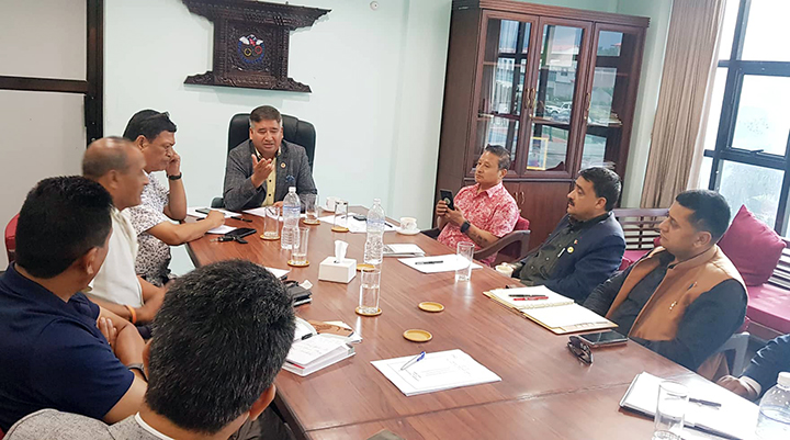 President of South Asian Olympic Council/ President of NOC/ Member of Parliament Honorable Jeevan Ram Shrestha chaired a meeting with Member Secretary of National Sports Council Mr. Ramesh Silwal regarding the preparation of South Asian Games slated to be held in Nepal.