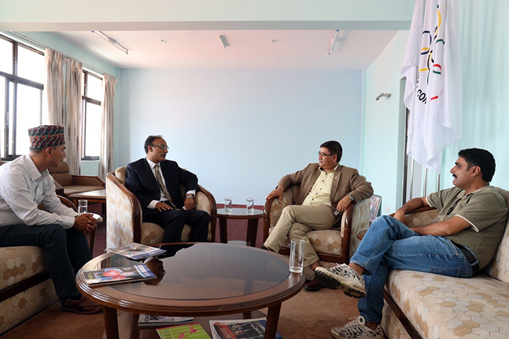 The meeting was conducted with the purpose of coordination between AIPS and NOC for the upcoming South Asian Games slated to be held in Nepal. Mr. Malik is a Sports Journalist from Pakisthan who has published 14 sports related Books and was also a commentator in Hockey where he commentated in 256 Hockey Games.