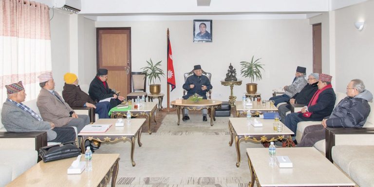 Meanwhile, the prior meeting was attended by Bishnu Poudel, Ishwor Pokharel, Shankar Pokharel and Pradeep Gyawali representing Prime Minister KP Oli faction, while Bhim Rawal, Raghuji Panta and Surendra Pandey represented leader Nepal.