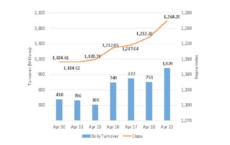 A total of 2,392,403 units of share of the total 169 companies were traded today while the total turnover was 786,412,808, the Nepal Stock Exchange Ltd (NEPSE) said. Five sub-indices, out of 12, were hit by the loss while the remaining seven indices closed with green signal.