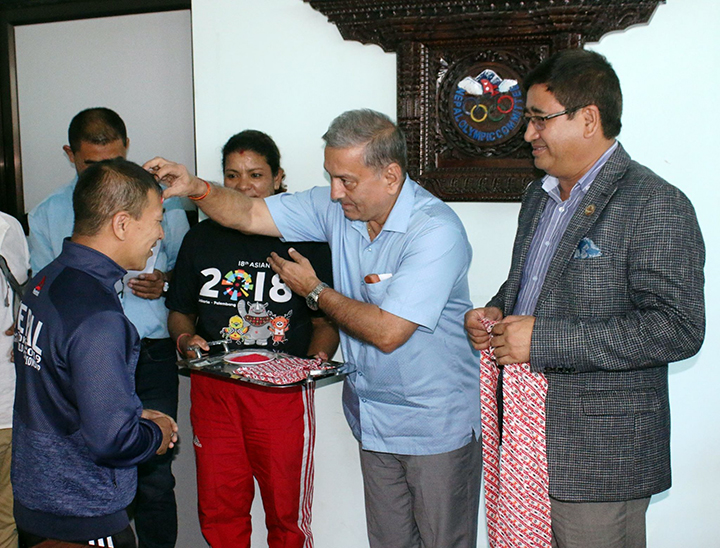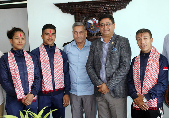 President of Nepal Olympic Committee/ Member of Parliament Honorable Jeevan Ram Shrestha bade farewell to 3 Athletes & 1 Coach to participate in World Judo Championship slated to be held in Tokyo, Japan from August 25 to September 01 ,2019.