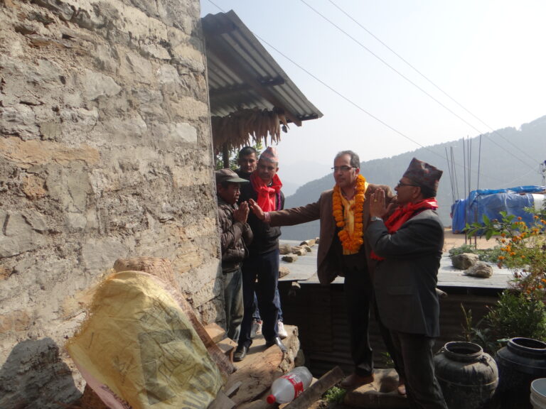 Mukti Suvedi Country Representative of World Renew an International Non-Governmental Organization worked inaudibly with his team and built 282 houses in Manakamana, which is in ward 5 of Kispang rural municipality in Nuwakot, Nuwakot is one of the earthquake affected district and may of the international organization are working, among which World Renew and its implementing partner NGO Nari Jagaran Samaj in Kispang- 5 (previously known as Manakamana VDC ward 4,6 and 7) become the first to complete the housing project and handed over 282 houses and community center to the communities. Country Representative Mr. Suvedi said we built a model village as all the communities who had internal and personal conflicts came together and build houses helping one another.