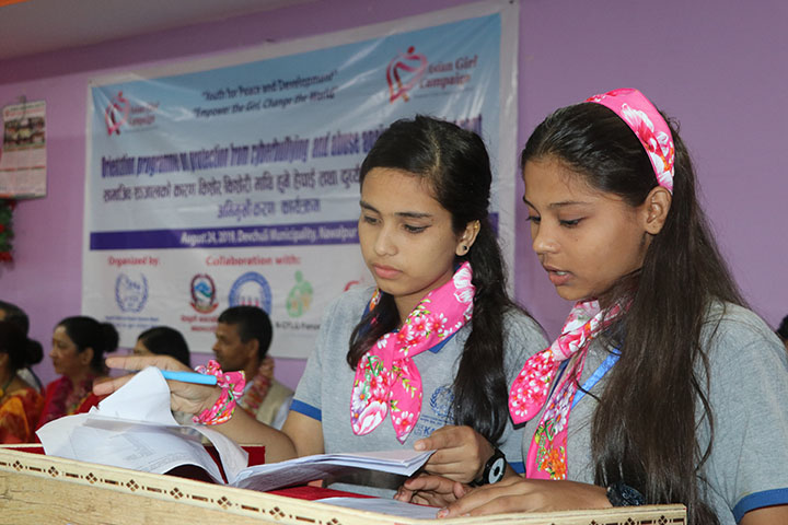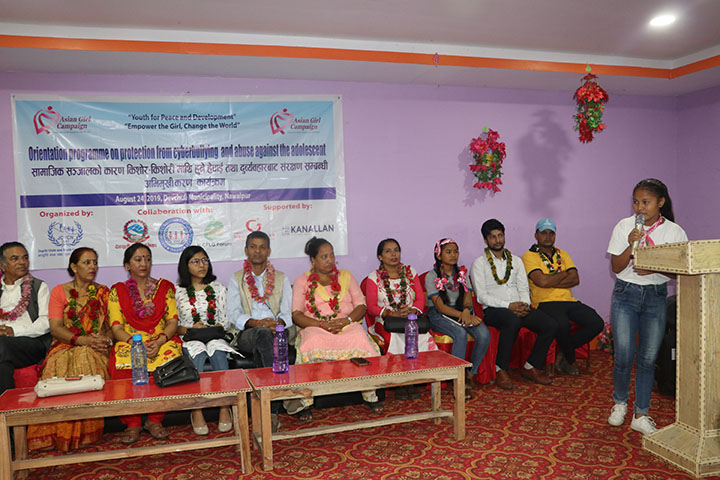 Cyber bully is the bullying that takes place over the digital and electronic communication device to bully a person by sending unwanted text, pictures, sms, sharing meaningless, harmful content. Social media, a computer based technology which facilitates by building of virtual network and communities but teen awareness is important as it is not used wisely. Lately, teenagers of the modern generation seem to be more attracted to social media. Because of social media, adolescents, especially girls are subjected to various forms of bully and abuse. In order to minimize such incidents and cases, Jagriti Child and Youth Concern Nepal conducted a “One-day orientation Program on Protection from cyber bullying and abuse against the adolescent” at Devchuli, Nawalpur on August 24, 2019.The Program was done in collaboration with NCFLG Forum, National Coalition for Girls Rights and Devchuli Municipality and supported by the Garden of Hope Foundation and Kanallan. The objective of the Program was to create awareness about the proper use of the internet and to reduce the adolescent from abuse and being cyberbullied.