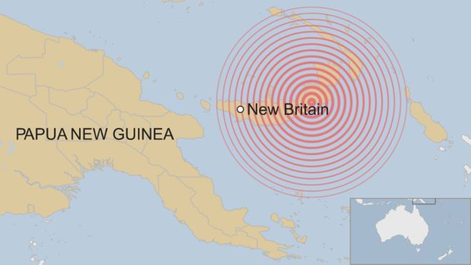 The quake struck some 162km (100 miles) from Rabaul, on New Britain island, at 07:25 on Friday (21:25 GMT Thursday).