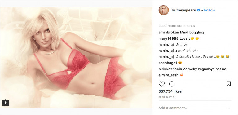 The post was flooded with fans’ comments, including “You are amazing!” and “Body goals.” The snap was followed up by a video of Spears sporting cat ears, nose, and paws, commenting in a faux-British accent, “I would love nothing more but a sip of milk at the moment.”
