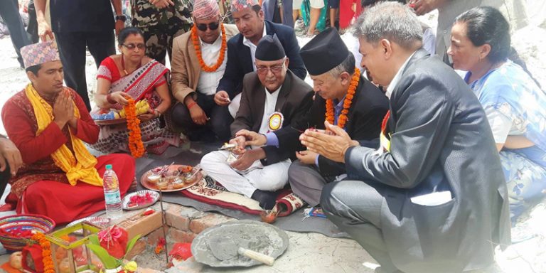 Minister KP Sharma Oli laid a foundation stone of ‘Manmohan Center Annex Building’ at the Tribhuvan University Teaching Hospital amidst a programme today.