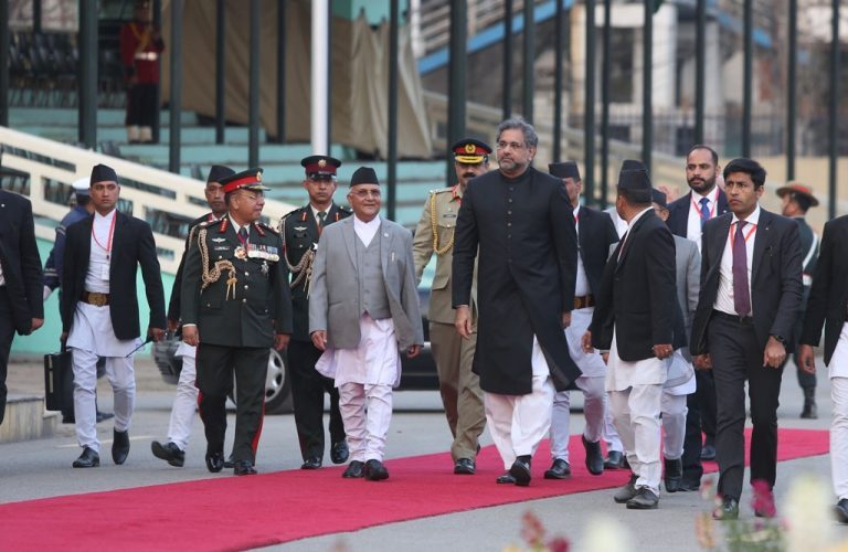 Earlier today, the Prime Minister of Pakistan Abbasi was warmly welcomed by Prime Minister Oli at the Army Pavilion, Tundikhel amidst a special ceremony. The Prime Minister of Pakistan inspected the guard of honor.