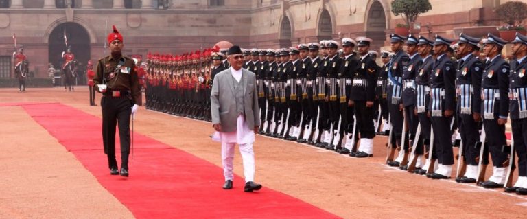 Earlier, Prime Minister Oli was welcomed to the ceremonial reception at the Forecourt of the Rashtrapati Bhavan by his Indian counterpart Narendra Modi. The national anthem of Nepal and India were played on the occasion.