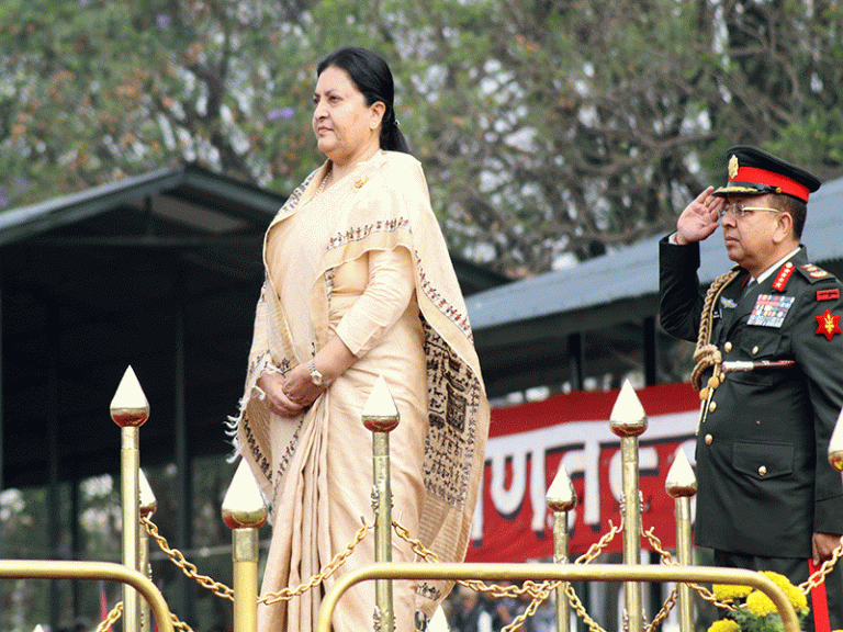 President Bidya Devi Bhandari today took part in a ceremony held to mark the Republic Day 2075 at the Nepal Army Pavilion, Tundikhel.