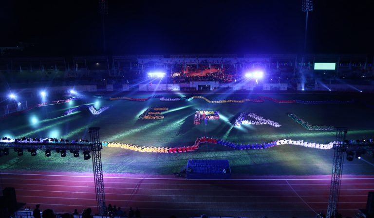 The SAG’s torch was brought to the stadium after it was toured in all seven states in the country. In the inaugural, a troupe of 7, 500 artists and students had performed, including the traditional Lakhe dance, in the stadium decked with light, flowers, frills and flags.