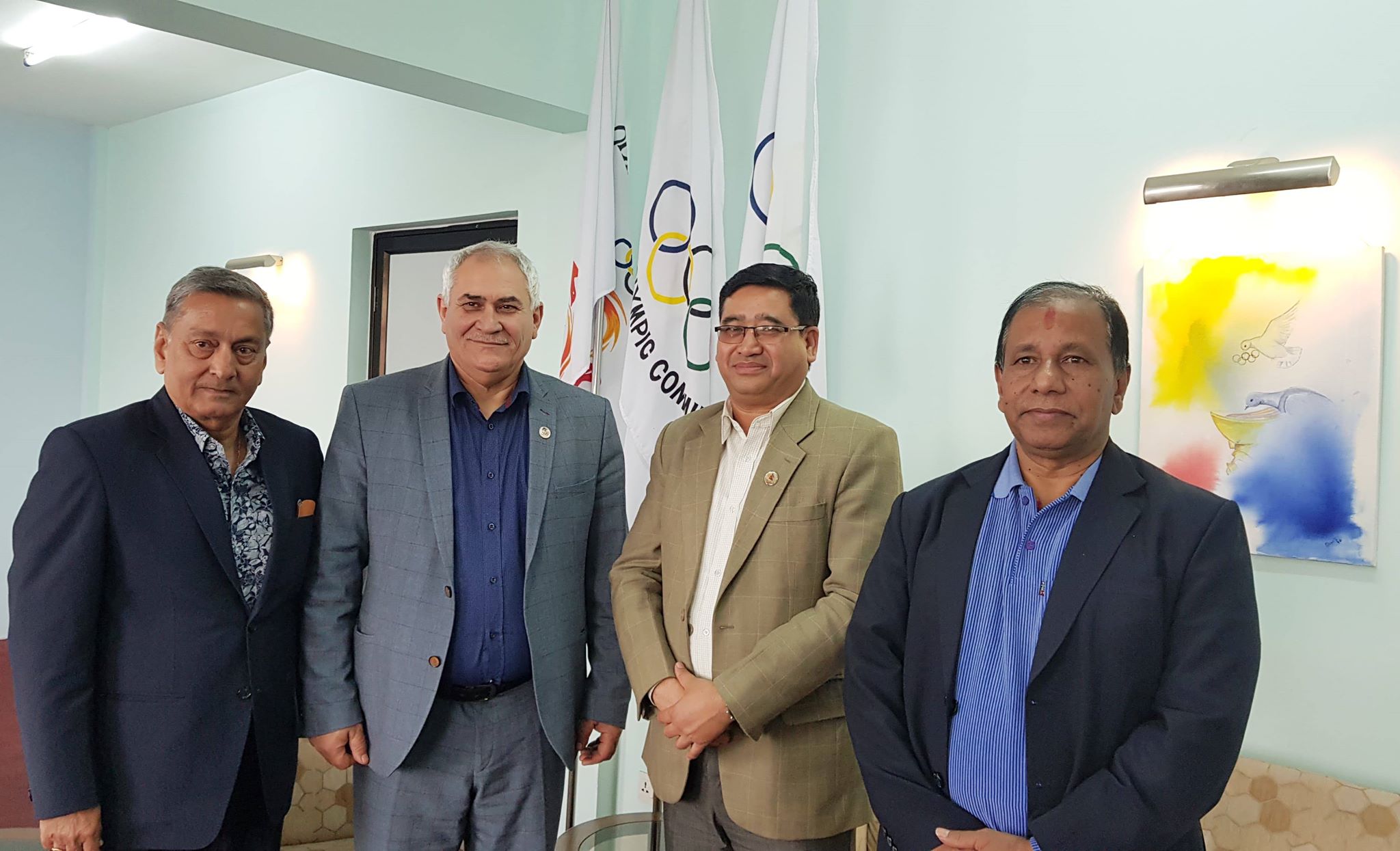 President of South Asian Olympic Council/ President of NOC/Member of Parliament Honorable Jeevan Ram Shrestha met with International Weightlifting Federation Secretary General & Asian Weightlifting Federation 1st Vice President Mr.Mohammed JALOOD along with President of Nepal Weightlifting Associaition Mr.Ratan Tandon.