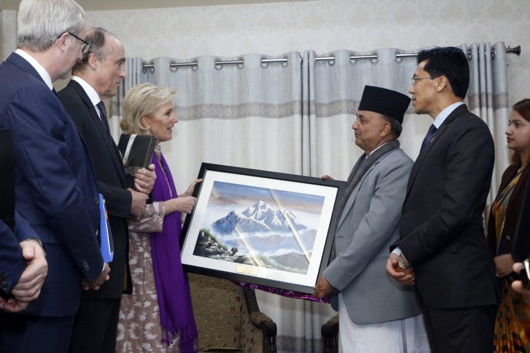 Princess Astrid of Belgium paid a courtesy call on Deputy Prime Minister and Defense Minister Ishwor Pokhrel at Singha Durbar on Tuesday. Princess Astrid who is currently on a five-day visit to Nepal said she would take initiative to further strengthen the economic relations between Nepal and Belgium by promoting trade, investment and tourism.