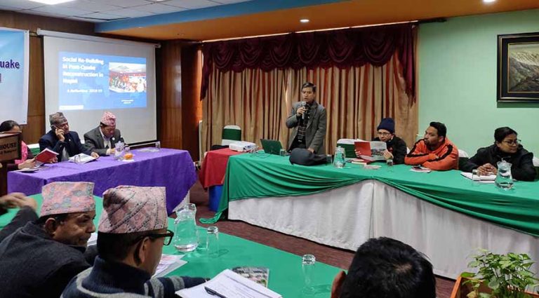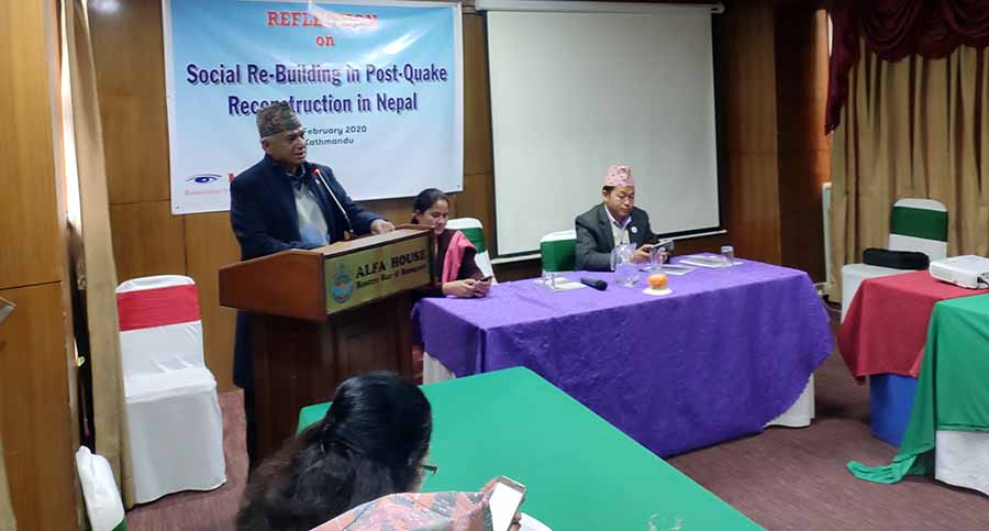 HAMI organized reflection program on “Social Re-Building in Post-Quake Reconstruction in Nepal” on 26th February 2020 at Alfa House, New Baneshwor, Kathmandu. Representatives from government bodies, local government, associations, federations and networks, non-government organizations, earthquake affected families, media were present in the program. In the program, publication of reflection report under the title, Social Re-Building in Post-Quake Reconstruction in Nepal was shared among the participants. The report is a culmination of overall advocacy and lobby based initiatives made by HAMI in post-quake reconstruction advocating the social justice perspective in rebuilding the earthquake affected communities.