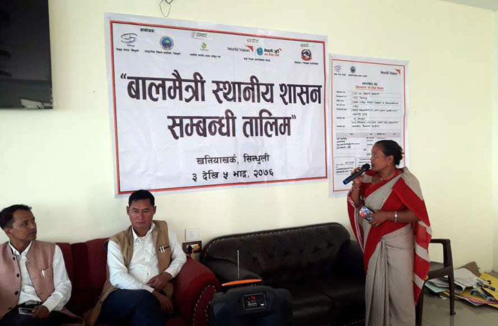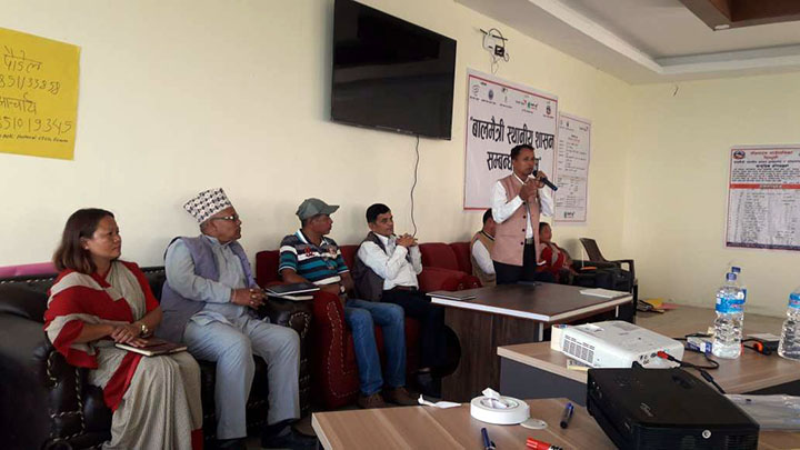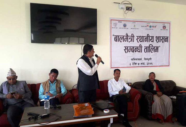 Three CFLG facilitators namely (Binod Prasad Dhakal – CFLG Expert, Tillotam Poudel- President of NCFLG and Haribol Acharya) regarding concept of child right, theory, CFLG in federal structure, manifesto, commitment, CFLG strategy, indicators, planning and role of stakeholders to make CFLG in community.