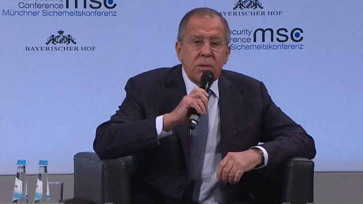 The Russian foreign minister was being questioned by participants at the Munich Security Conference.