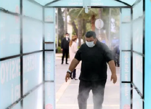 Disinfectant sanitizing tunnels have been set up in five different places in Pokhara. The tunnels are set to ensure that people visiting Kaski district (Gandaki State) get their whole body sanitized with sodium hydrochloride to check the spread of COVID-19.