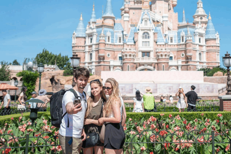 Foreign tourists pose for a picture at Shanghai Disney Resort, in Shanghai, east China, Aug. 28, 2025. (Photo/Wang Chu)