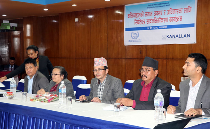 On 26th March 2019, Jagriti Child and Youth Concern Nepal with the support of KANALLAN conducted the sharing program for the “Position Paper on the Situation of Girls in Nepal” at Alfa House, Kathmandu. The position paper had been prepared with consultation with CSOs at local and federal level and focused on policy analysis on girl’s rights in the existing provision. The chief guest of the program was the Honorable Minister of Women, Children and Senior Citizen, Tham Maya Thapa while Tilottam Paudel, President of JCYCN, chaired the event. There was a participation from over 100 participants including federal and provincial parliamentarians, National Youth Council, CCWB, National Planning Commission, NGO Federation, Child Rights Network representatives, CSO representatives, INGO representatives, media personals and likeminded stakeholders.