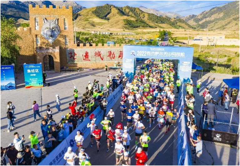 A marathon event is held in Jimusar county, northwest China’s Xinjiang Uygur autonomous region, July 17, 2022. (Photo by He Long/People’s Daily Online)