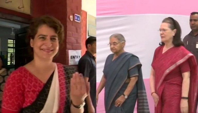 Sonia Gandhi, Priyanka Gandhi and her husband Robert Vadra cast their vote on Sunday, as the national capital went to polls in the sixth phase of Lok Sabha elections.