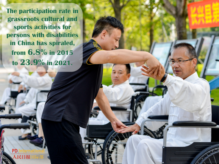The Participation rate in grassroots culture and sports activities for persons with disabilities in China has spiraled from 6.8% in 2015 to 23.9% in 2021