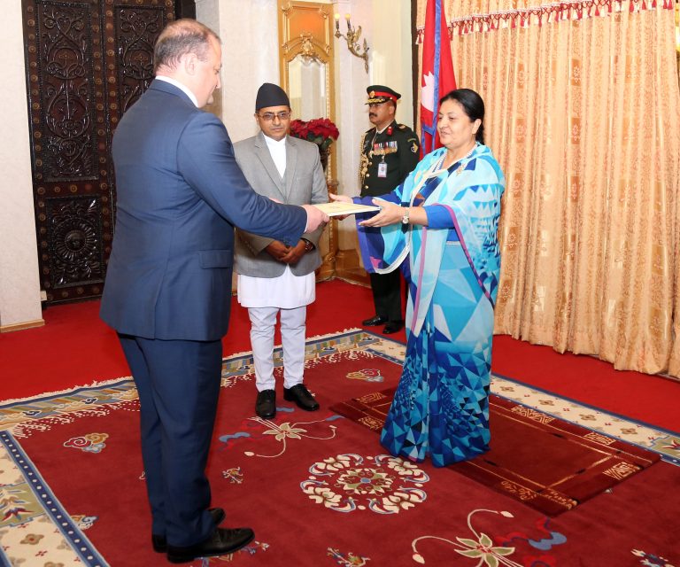 Ambassadors to Nepal from Georgia, Romania and Poland to Nepal, presented their letters of credence to President Bidya Devi Bhandari at the latter’s office Tuesday afternoon.