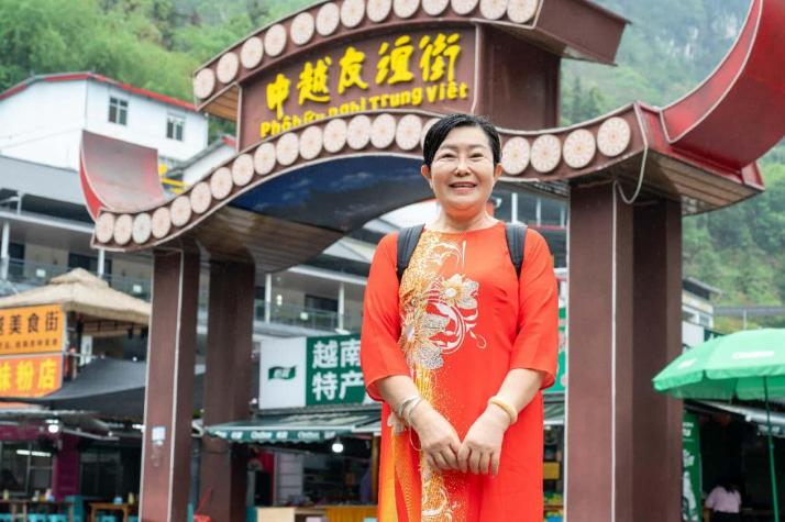 She met her husband in Detian village more than two decades ago and gradually learned Chinese. Today, she runs a stall on the China-Vietnam Friendship Street in the village.