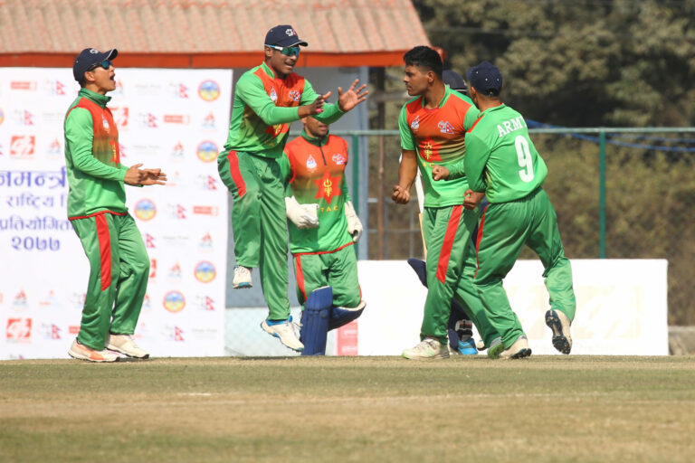 In reply, Abinash Bohara of APF claimed the highest four wickets of TAC giving away 25 runs, Kishore Mahato grabbed two wickets conceding 53 runs while Kamal Airee, Bhuvan Karki, and Sharad Veswakar took one wicket each of TAC.