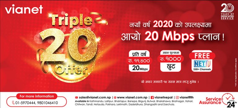 Vianet is also celebrating 20years in the market, therefore the launch of “Triple 20 offer” is an ideal celebration for the new customers to join in the family. The offer has started from the 30th of December 2019 and is valid only till the 14th of January 2020.
