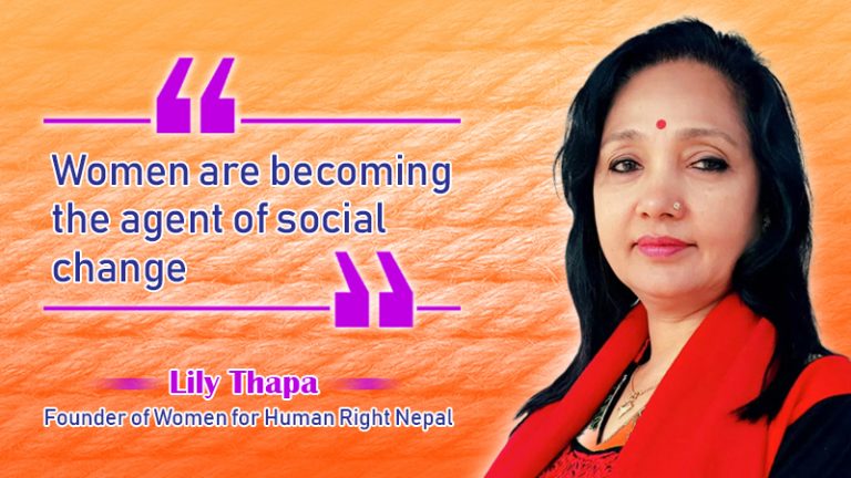 Women for Human Right Nepal is an organization which works to secure the political, social, cultural, and economic rights of single women in Nepal encompassing 1 lakhs and 25 thousand members around the world serving in 18 districts of the country. It is continuously working to break the patriarchal thoughts deeply rooted in the society against women particularly single women. Lily Thapa, the founder of WHR said that Nepali society still has the confined thinking over single women in Nepal. The majority of the widows in Nepal are illiterate as per the 2010 census and this is the major cause for them to be economically strong and pursue their lives ahead. However, now the situation is far more improved comparing to the past, Thapa further added that “now the widows themselves are becoming the agent of social change in the Nepali society leading the whole community”. Even, Government of Nepal has strongly mentioned the issues of single women in their mainstream policy comprising 10th to 15th national planning.