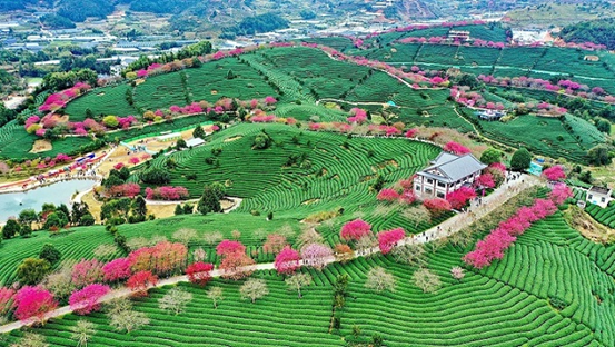 The construction of eco-friendly tea plantations also drives the development of relevant industries. “The oriental cherries planted in the plantations not only improved ecology but also the scenery of plantations, which makes tea-themed tourism possible,” Fang said.