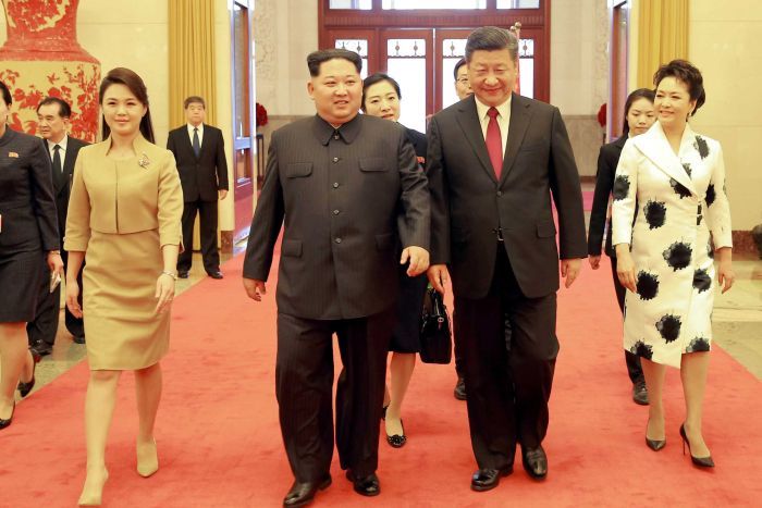 During the visit, Xi held talks with Kim at the Great Hall of the People in Beijing. Xi and his wife Peng Liyuan held a welcoming banquet for Kim and his wife Ri Sol Ju and watched an art performance together.