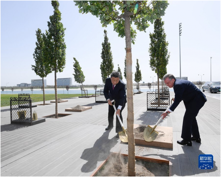 Xi and Mirziyoyev jointly planted an oak tree at the square outside the north entrance of the International Conference Center, Samarkand. As a symbol of longevity, the oak tree signifies that China-Uzbekistan friendship will thrive and endure.